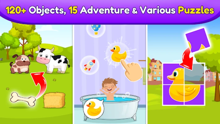 "Baby Games: 2+ kids, toddlers" adalah permainan edukasi gratis yang dirancang untuk balita usia 2-3 tahun. Bantu anak Anda belajar kata, warna, bentuk, dan nama hewan melalui aktivitas yang menyenangkan dan interaktif. Dibuat oleh ahli, aplikasi ini menawarkan pengalaman belajar yang aman dan mudah dinavigasi sendiri oleh anak-anak.