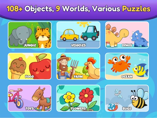 Masa kanak-kanak adalah waktu emas untuk eksplorasi dan pertumbuhan. "Baby Puzzle Games for Toddlers" hadir sebagai teman bermain yang cerdas untuk si kecil berusia 2 hingga 5 tahun, dirancang khusus untuk mengasah keterampilan kognitif dan motorik mereka. Melalui serangkaian teka-teki interaktif yang memukau, anak-anak dapat belajar mengenal nama-nama beragam hewan, ikan, makanan, dinosaurus, dan banyak lagi, sambil mengembangkan pemecahan masalah dan koordinasi fisik. Lebih dari sekadar aplikasi edukasi, kami percaya bahwa belajar haruslah petualangan yang menyenangkan dan penuh tawa.