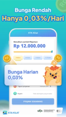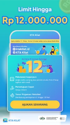 Ketika kebutuhan finansial mendesak muncul, KTA Kilat hadir sebagai solusi pinjaman dana tunai online yang terpercaya dan responsif. Di bawah pengawasan ketat Otoritas Jasa Keuangan (OJK), KTA Kilat menawarkan proses aplikasi yang sepenuhnya tanpa jaminan, cukup dengan identitas pribadi Anda. Rasakan kemudahan mendapatkan akses dana hingga Rp 12.000.000, dirancang khusus untuk mendukung stabilitas keuangan Anda dengan cepat dan aman, memastikan setiap langkah pengajuan Anda terasa ringan dan praktis.